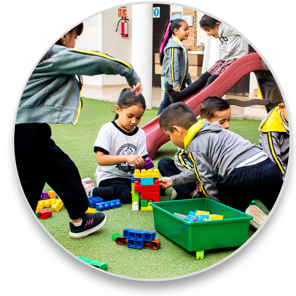 Los alumnos crean sus propios juegos y libremente escogen qué y con quiénes jugar. Los juegos y materiales son variados diariamente para fomentar la imaginación e innovación.